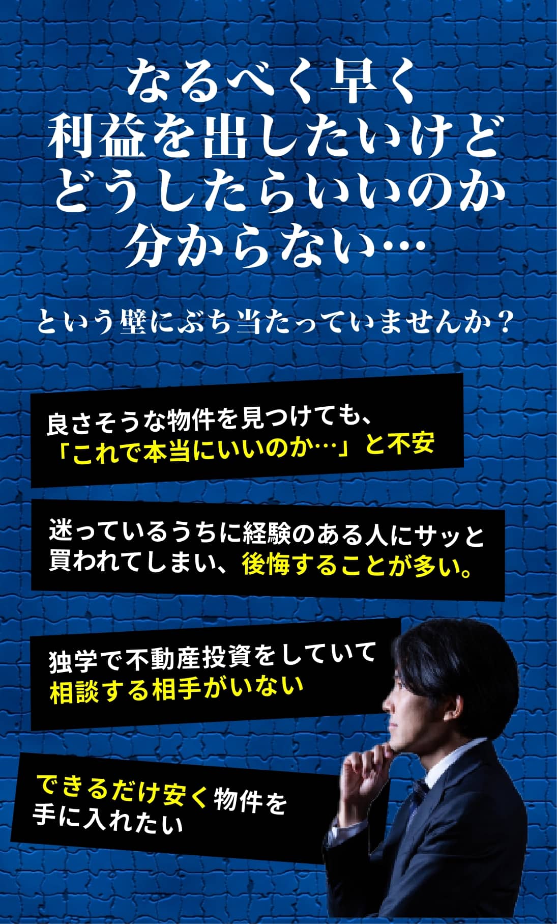 他の投資家が避けがちな“ワケあり”物件こそ、競争が少ないため買い付けチャンスが多く、高利回りを狙いやすいのが魅力です。
